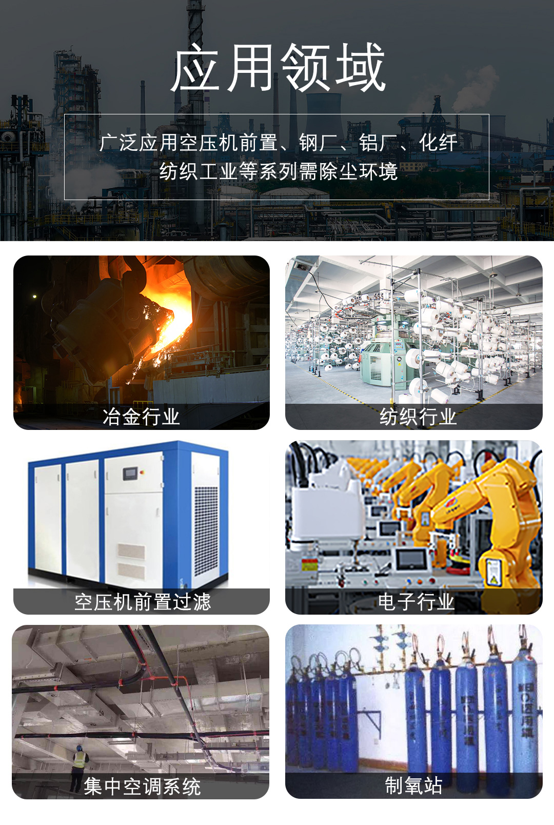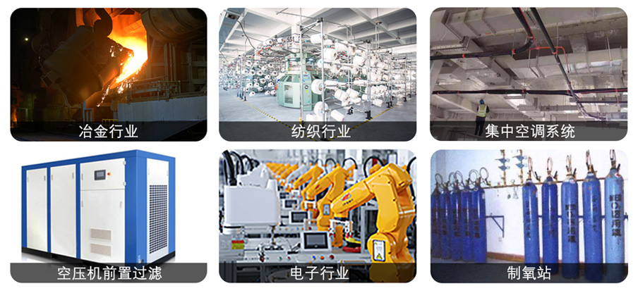 廣泛應用于:冶金行業,紡織行業,空壓機前置過濾,電子行業,集中空調系統,制氧站